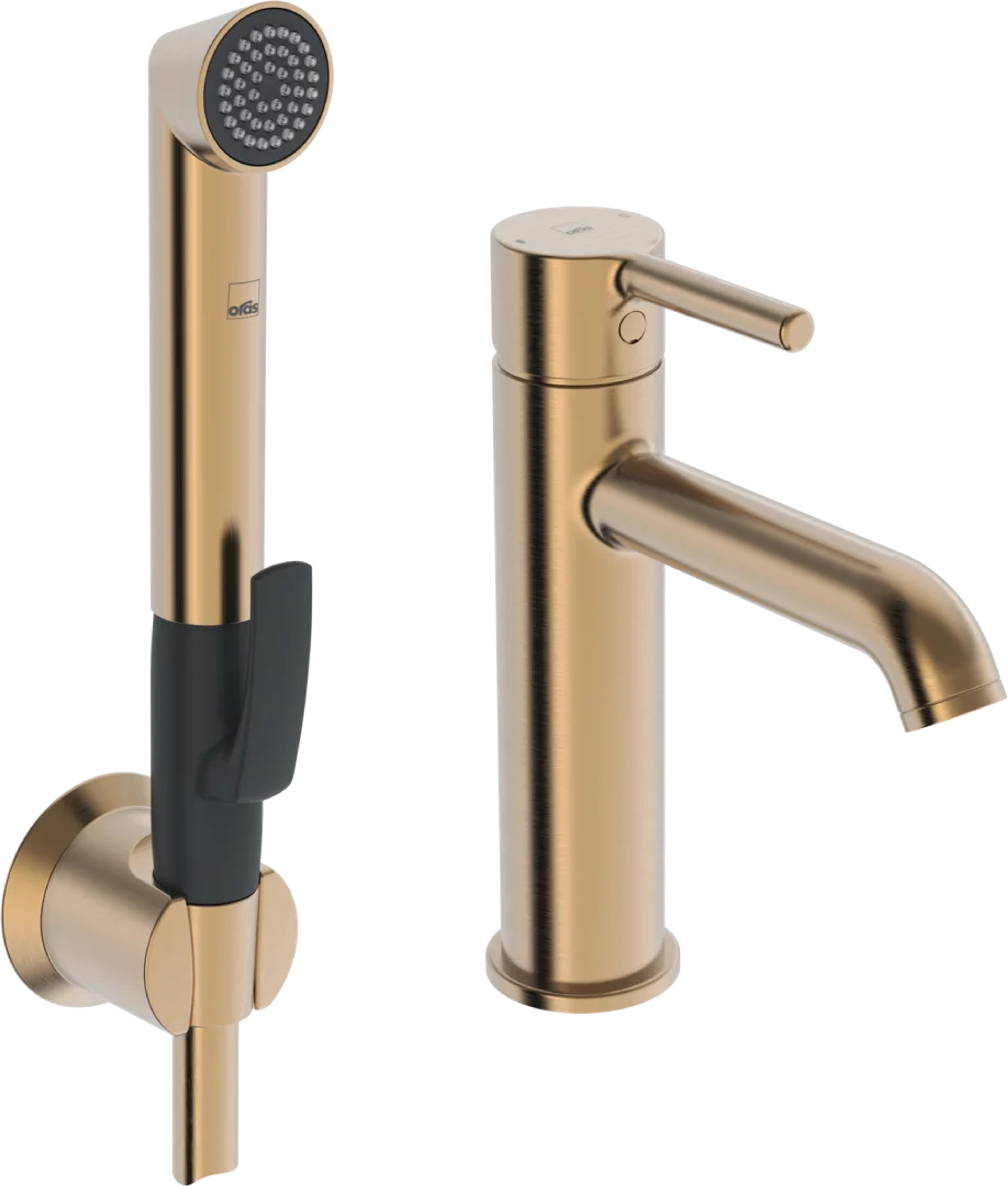 Servantkran i børstet bronse, med pinnehendel i moderne og klassisk design. En klassiker som passer inn på ethvert baderom. Denne servantkranen har Bidetta hånddusj. Servantkranen gir 6 l/m Høy kvalitet Produsert i Europa Slank design Pinnehendel Bidetta hånddusj Anti-kalk strålesamler for enkel rengjøring Servantkran som gir komfort