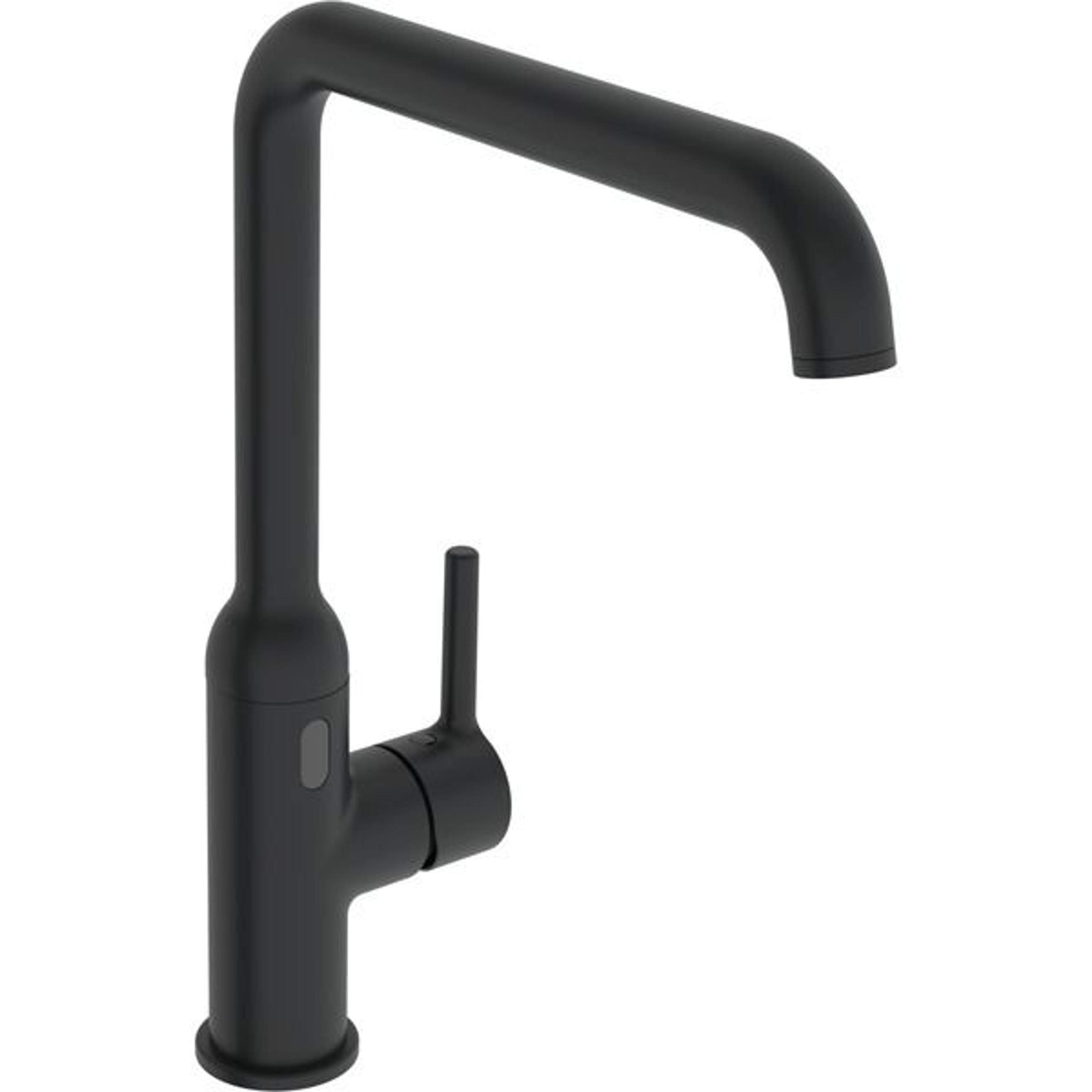 Optima Style Hybrid i svart matt kjøkkenkran er den perfekte kranen for ethvert kjøkken, med en kvalitet du kan stole på. Holdbar både i design og levetid. Hybridmodellen har en sensor i tillegg til vanlig hendel, slik at du kan vaske hendene uten å måtte ta på kranen først. Kjøkkenkranen gir 10,8 l/m