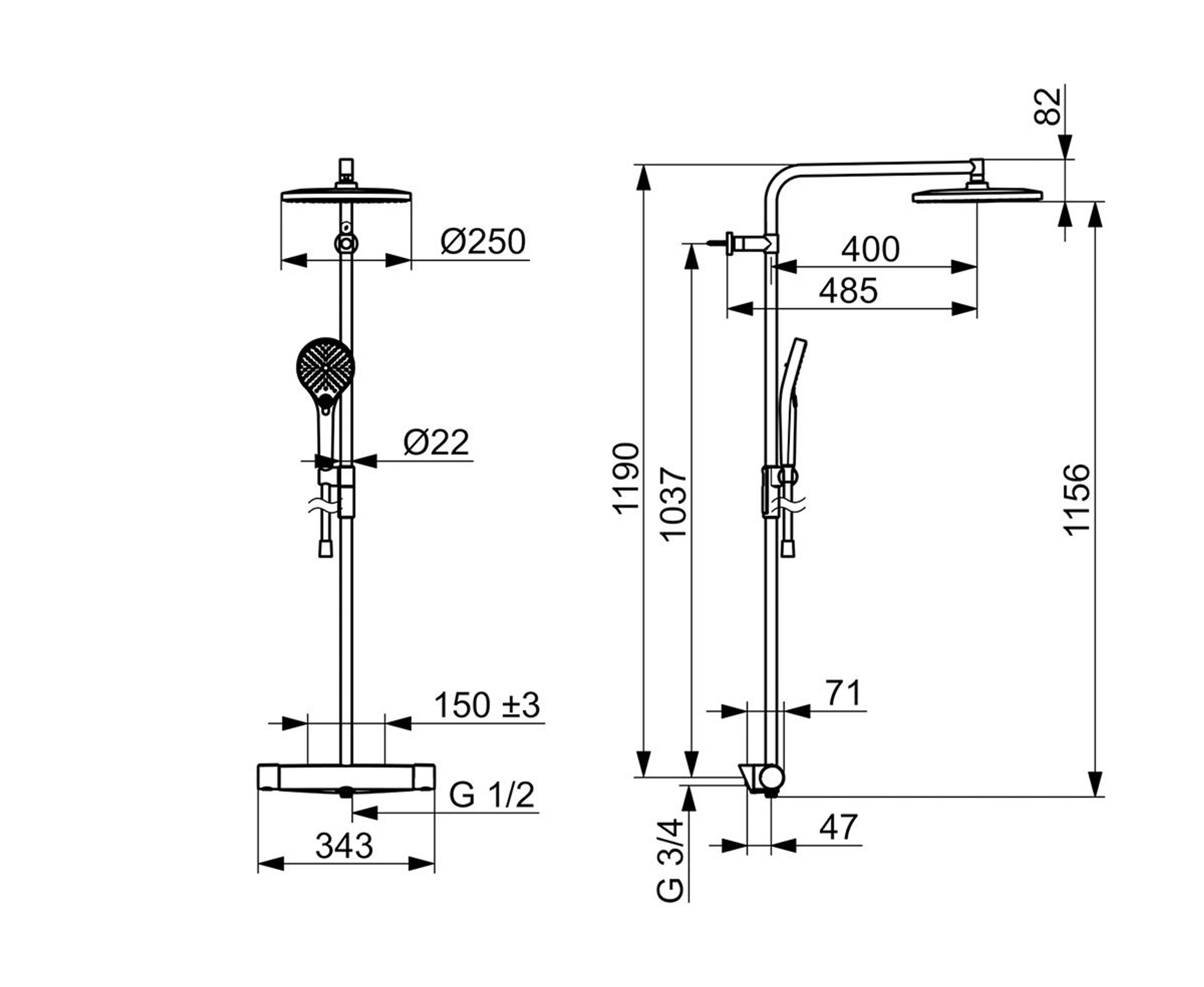 Oras Armatur dusjkran med takdusj og hånddusj. Rain shower.