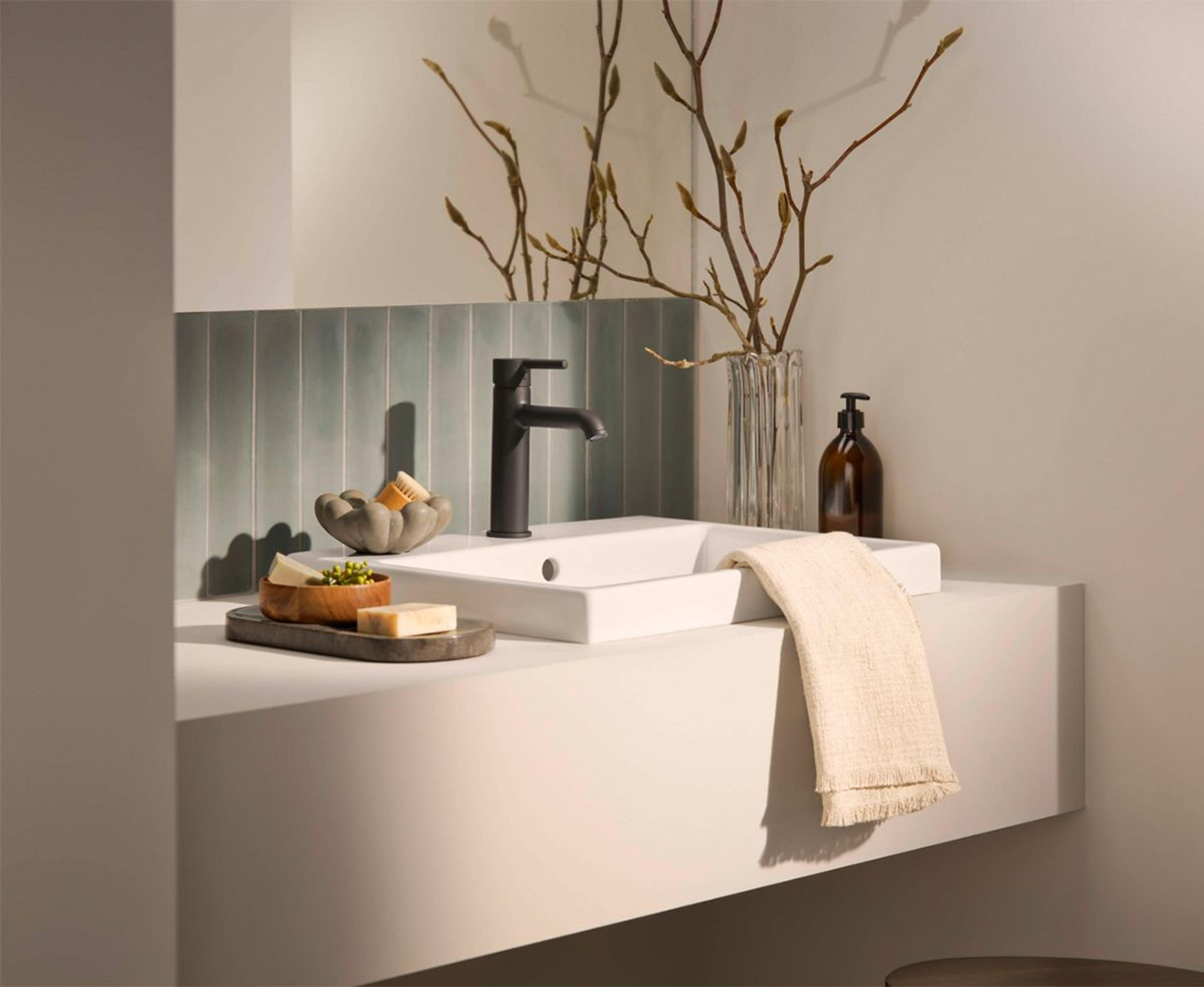 Servantkran med ettgreps betjening i et klassisk moderne design. Solid, trygg og holdbar kran som gir glede og trygghet i mange år. Med anti-kalk teknologi, og kranen gir 6 l/m. Farge: Sort matt.