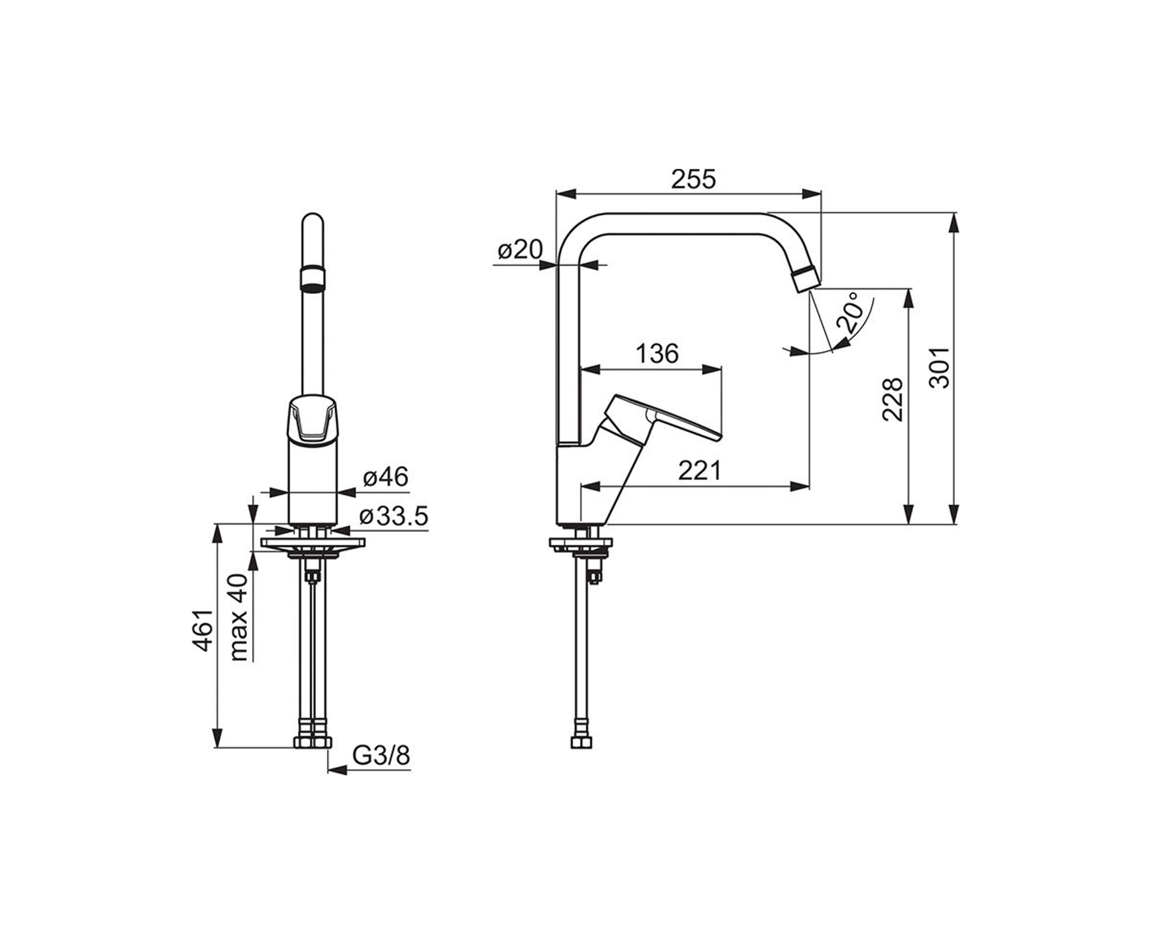 Kjøkkenkran med høy svingbar tut og strålesamler Tutens svingradius er fabrikkinnstilt til 120° (kan begrenses til 60°). Det er også innebygd alternative begrensninger for vanntemperatur og maksimal vannmengde. F = med fleksible slanger. Oras Saga er en konkurransedyktig, tidløs designlinje for moderne prosjekt kjøkken.