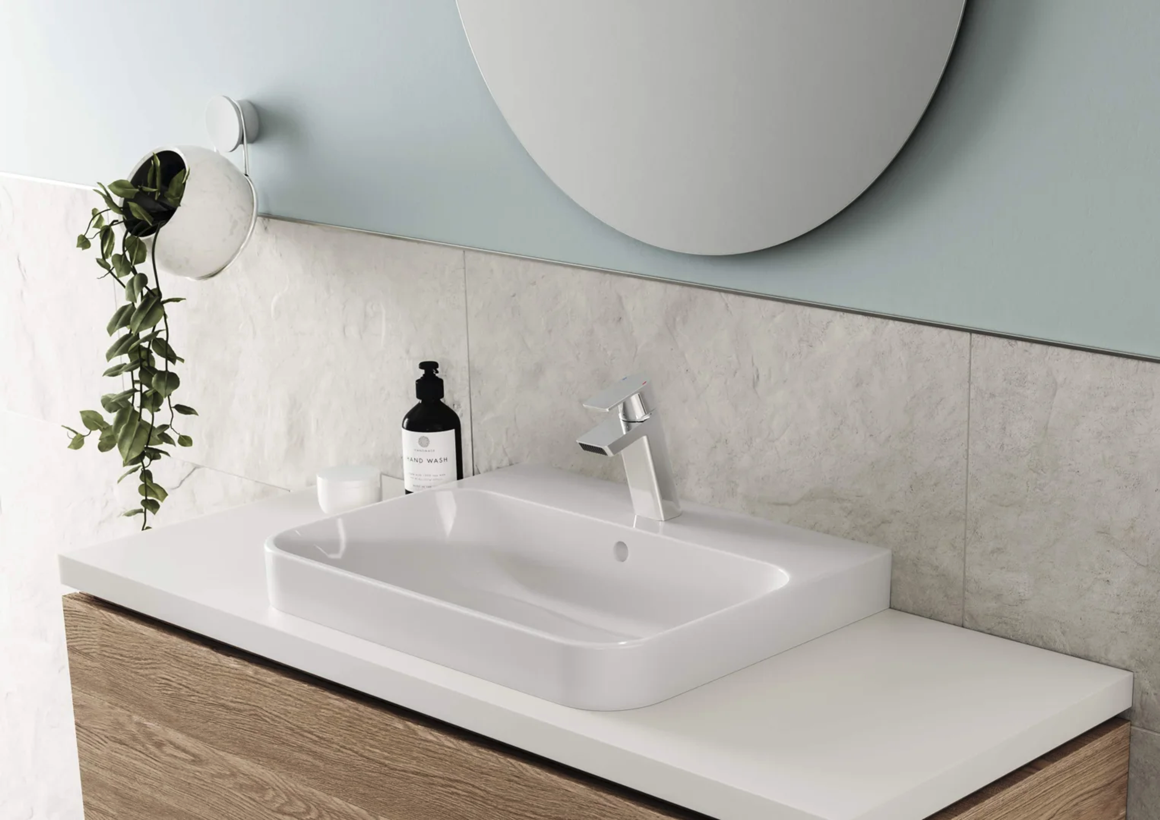 Oras Stela - med rene geometriske former, for å se moderne ut i årene som kommer. Servantkran med strålesamler som gir diamantstrukturert fossefall, et godt visuelt utseende også uten vann.