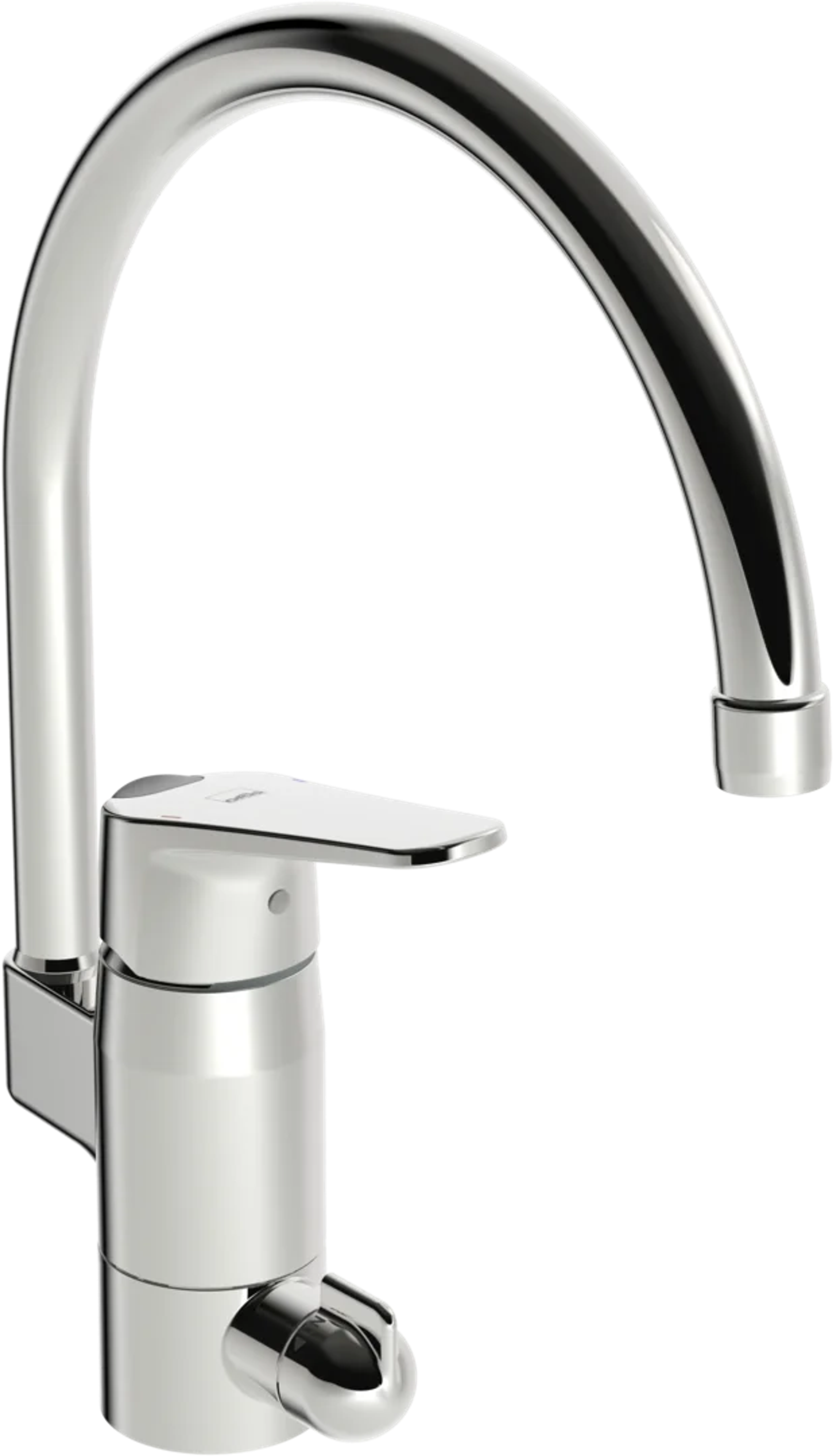 Kjøkkenkran med høy svingbar tut, strålesamler og keramisk avstengning for oppvaskmaskin (ON/OFF). Tutens svingradius er fabrikkinnstilt på 120° (kan begrenses til 40 til 80°). Vendbar sokkel som gjør at tuten monteres bak, til høyre eller venstre på krankroppen ved installasjon. Hendelen er utstyrt med en økoknapp som kan begrense vannmengden og temperatur. Funksjonen oppheves enkelt ved trykke på knappen. Sikker i bruk og vannbesparende. Vannmengde 0,11/0,14 l/s (øko/standard). Oras 3S installasjonssystem for enkel, sikker og rask montering. F = fleksible slanger