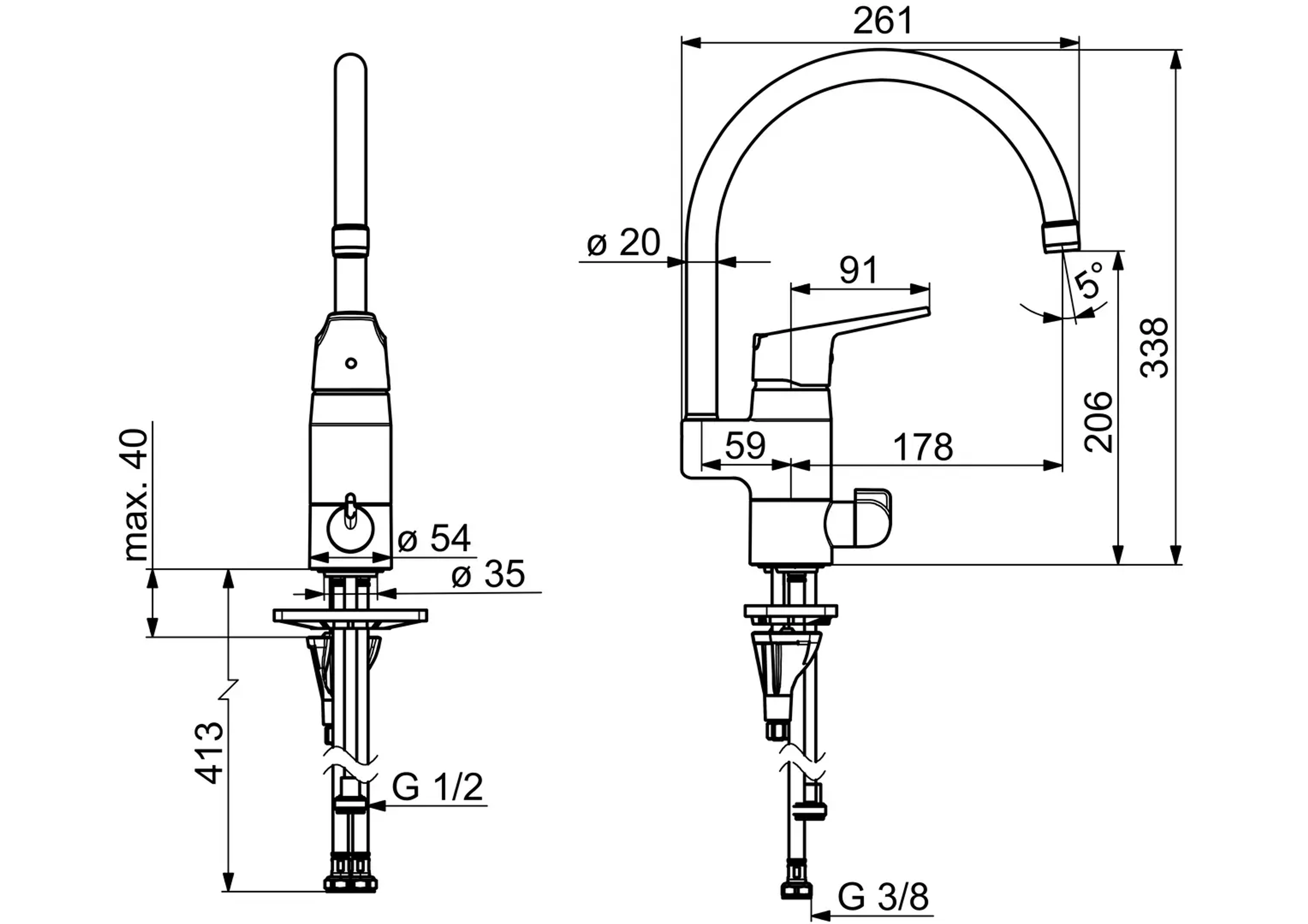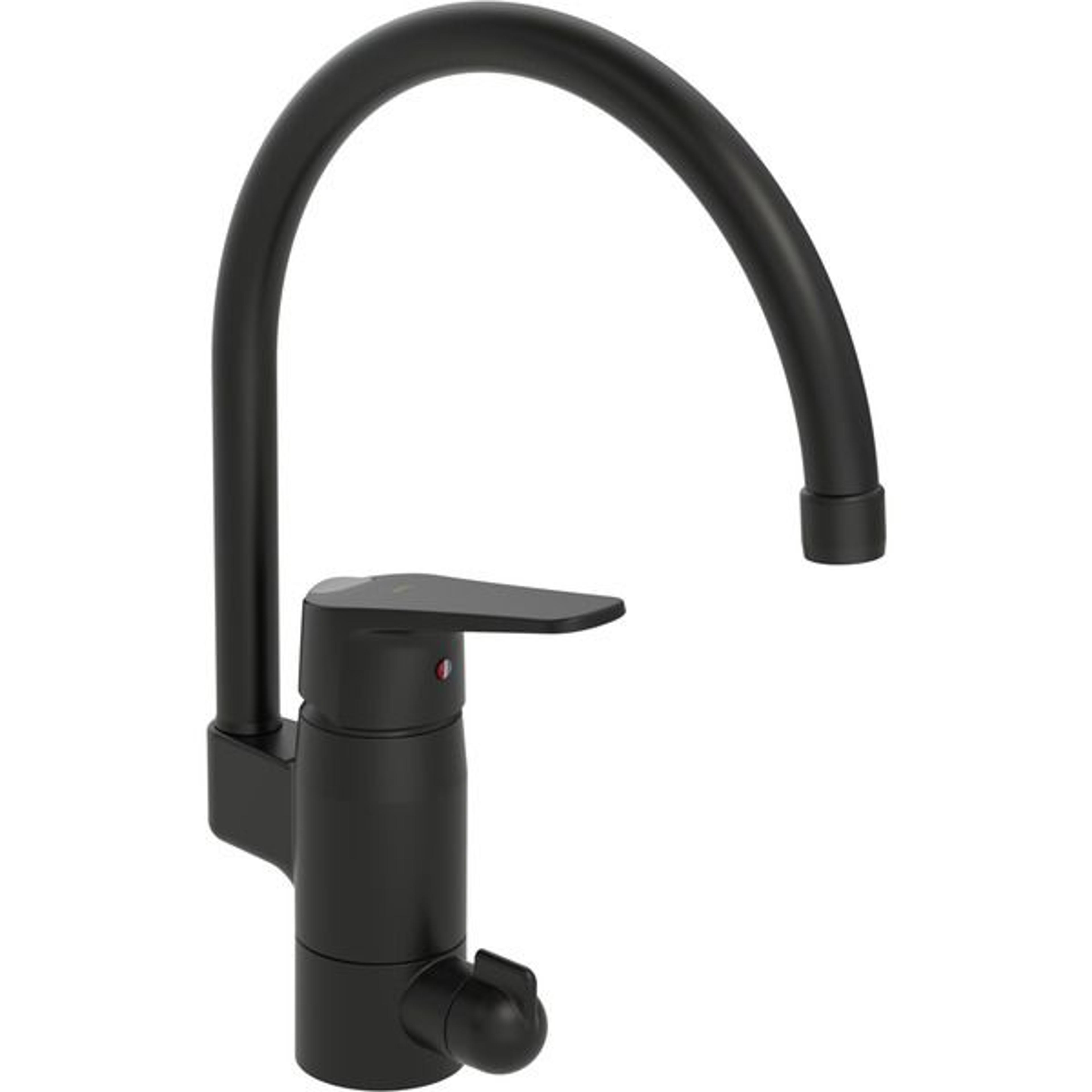 Kjøkkenkran i matt svart, med høy svingbar tut, strålesamler og keramisk avstengning for oppvaskmaskin. Tutens svingradius er fabrikkinnstilt på 120 grader, kan begrenses til 40-80 grader. Justerbar sokkel som gjør at tuten kan justeres bak, til høyre eller venstre på krankroppen ved installasjon. Hendelen er utstyrt med en økoknapp som kan begrense vannmengden. Funksjonen oppheves enkelt ved trykke på knappen. Sikker i bruk og vannbesparende. Oras 3S-Installation for enkel, sikker og rask montering. F = fleksible slanger