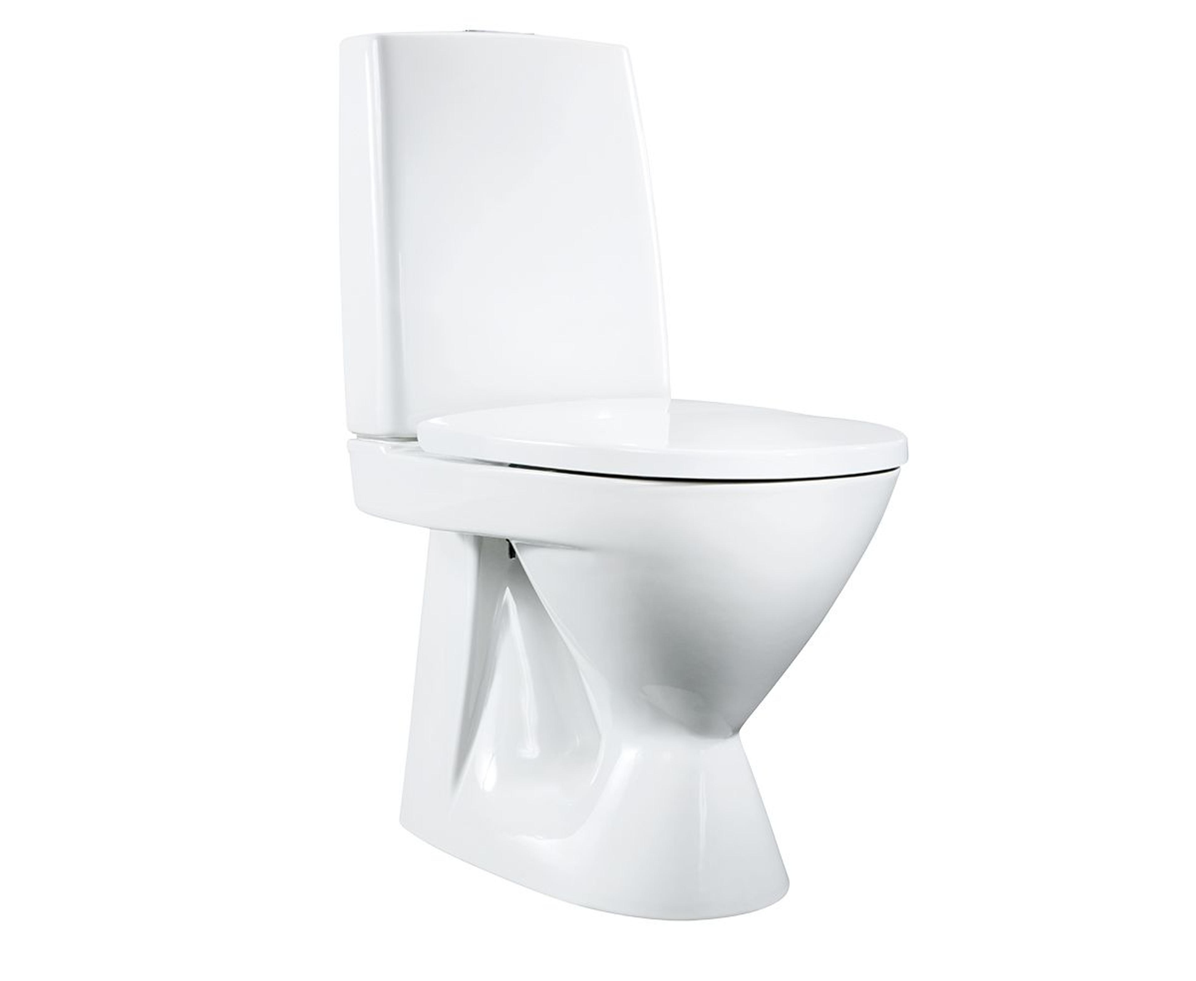 Avløp til gulv, skjult S-lås. Det enkle designet med rene linjer bidrar til enkel rengjøring. Dobbeltskyll. Monteres med lim, ingen skruehull. Innvendig plastsisterne som begrenser kondens.