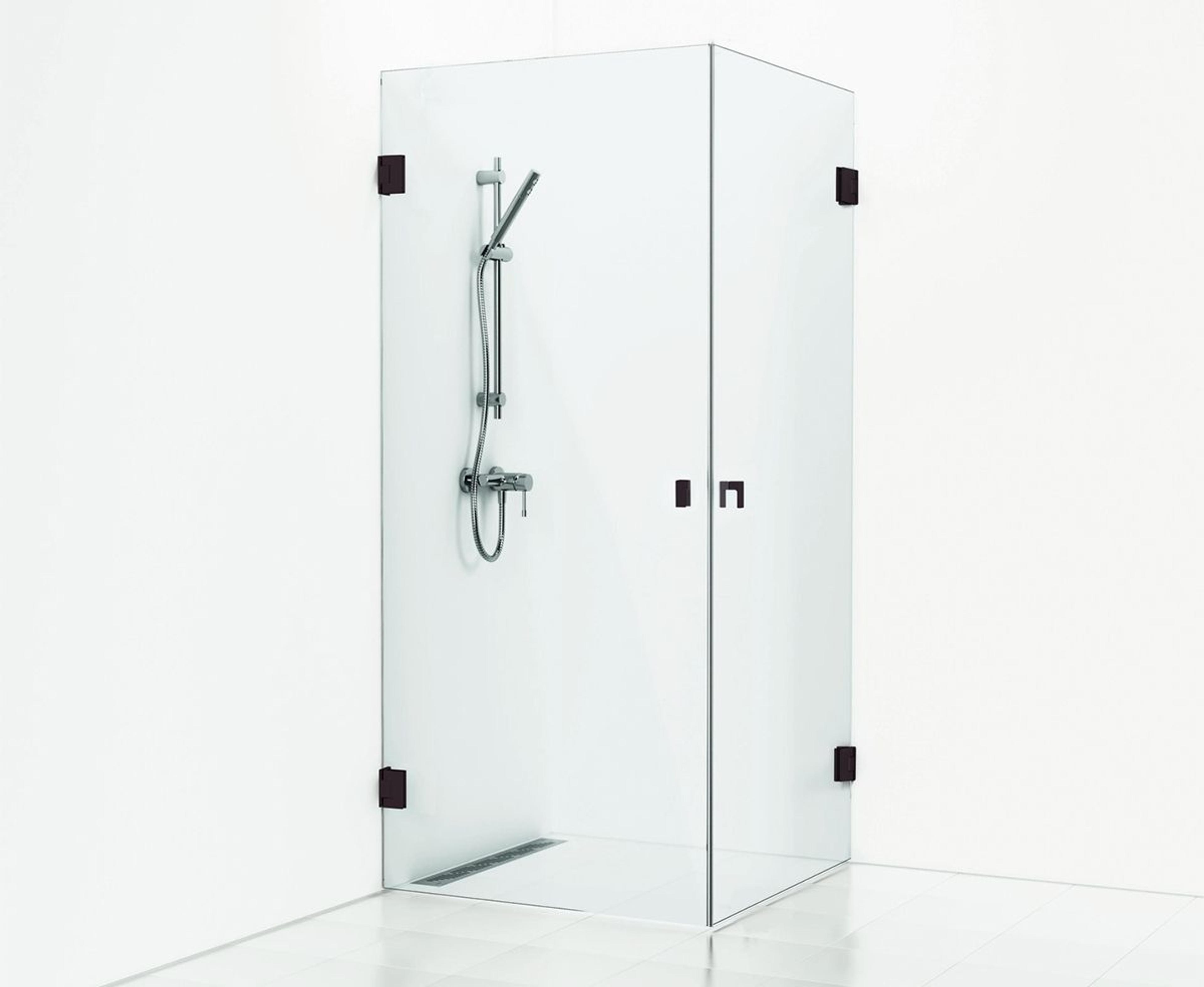 180° rett hjørnedusj med to åpningsbare dører i klart glass med pulverlakkerte profiler i matt svart. Hjørnedusjen har 8 mm herdet sikkerhetsglass og selvlukkende hengsler. Pris uten dusjsett og dusjkran. Mål: B: 90 H: 200 D: 90 cm