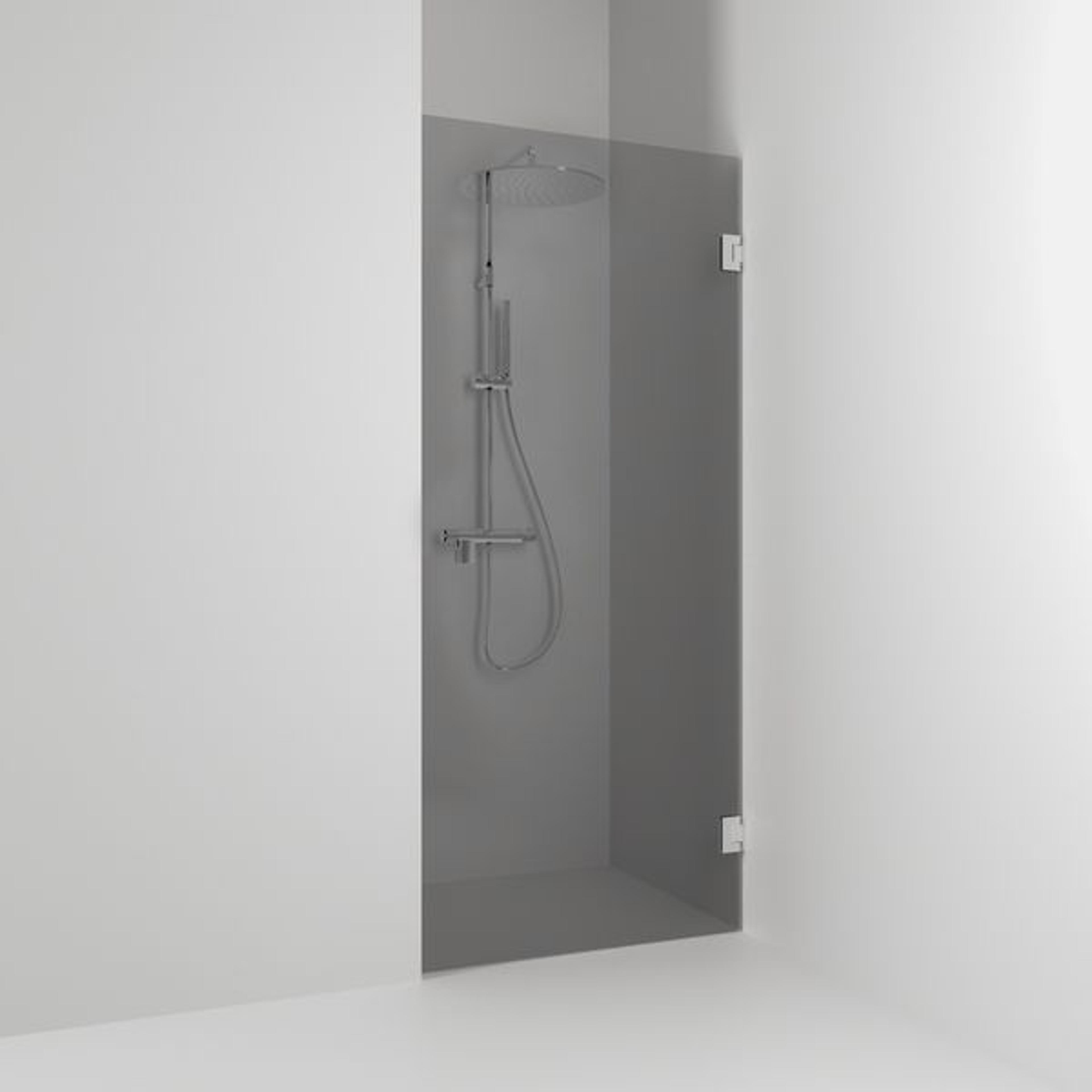 For deg som allerede har tre vegger og har tenkt å bygge en nisjedusj. De store glassflatene gir et lett og luftig inntrykk, og dessuten blir det lett å gjøre rent. Håndtak, hengsler, stag og gulvfeste forsterker helhetsinntrykket. 8mm herdet sikkerhetsglass.