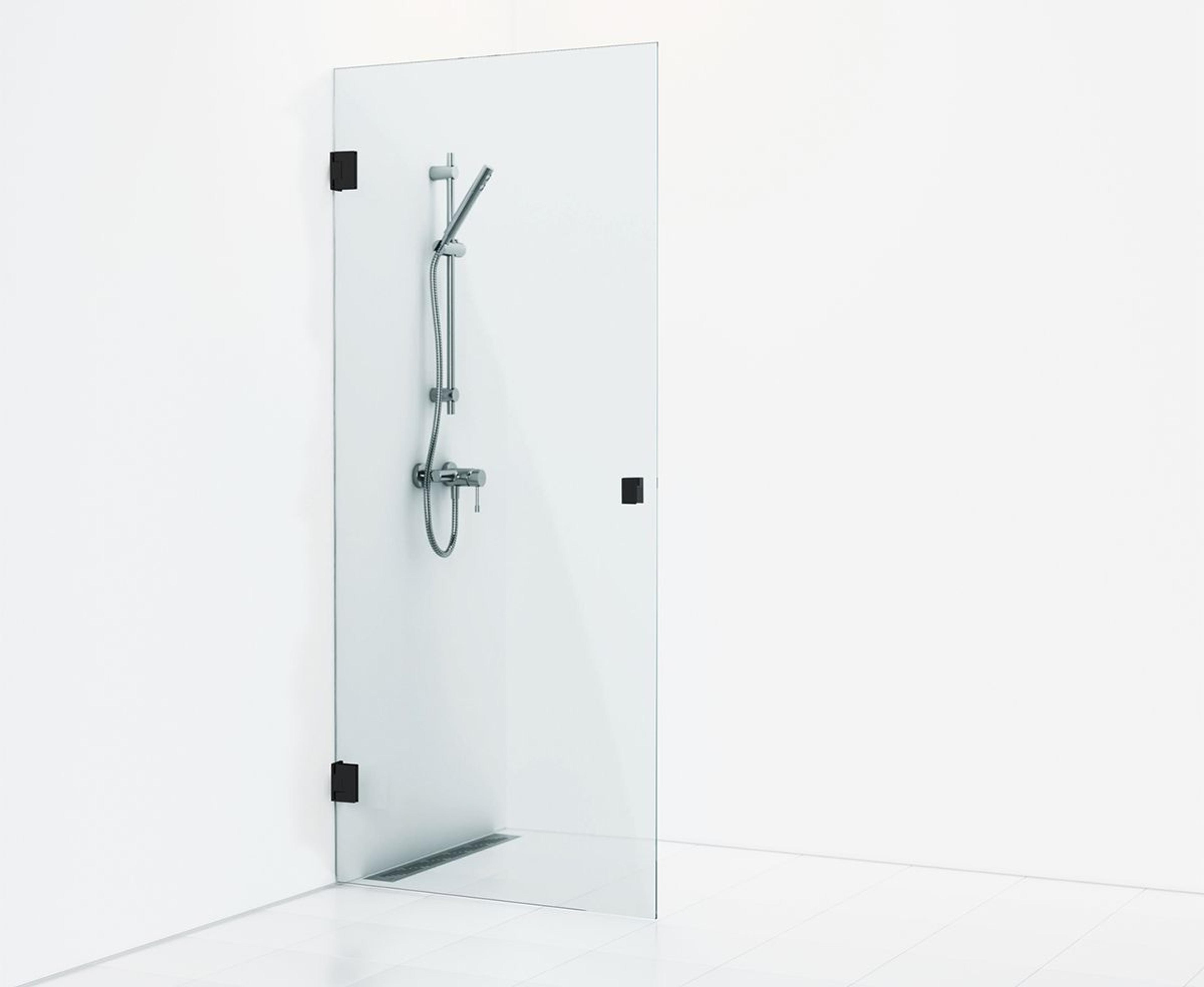 180° enkel nisjedusj 88.5 med en åpningsbar dør i klart glass med pulverlakkerte profiler i matt svart. Nisjedusj med 8 mm herdet sikkerhetsglass og selvlukkende hengsler. Pris uten dusjsett og dusjkran. Mål: B: 88,5 H: 200 D: 0,8
