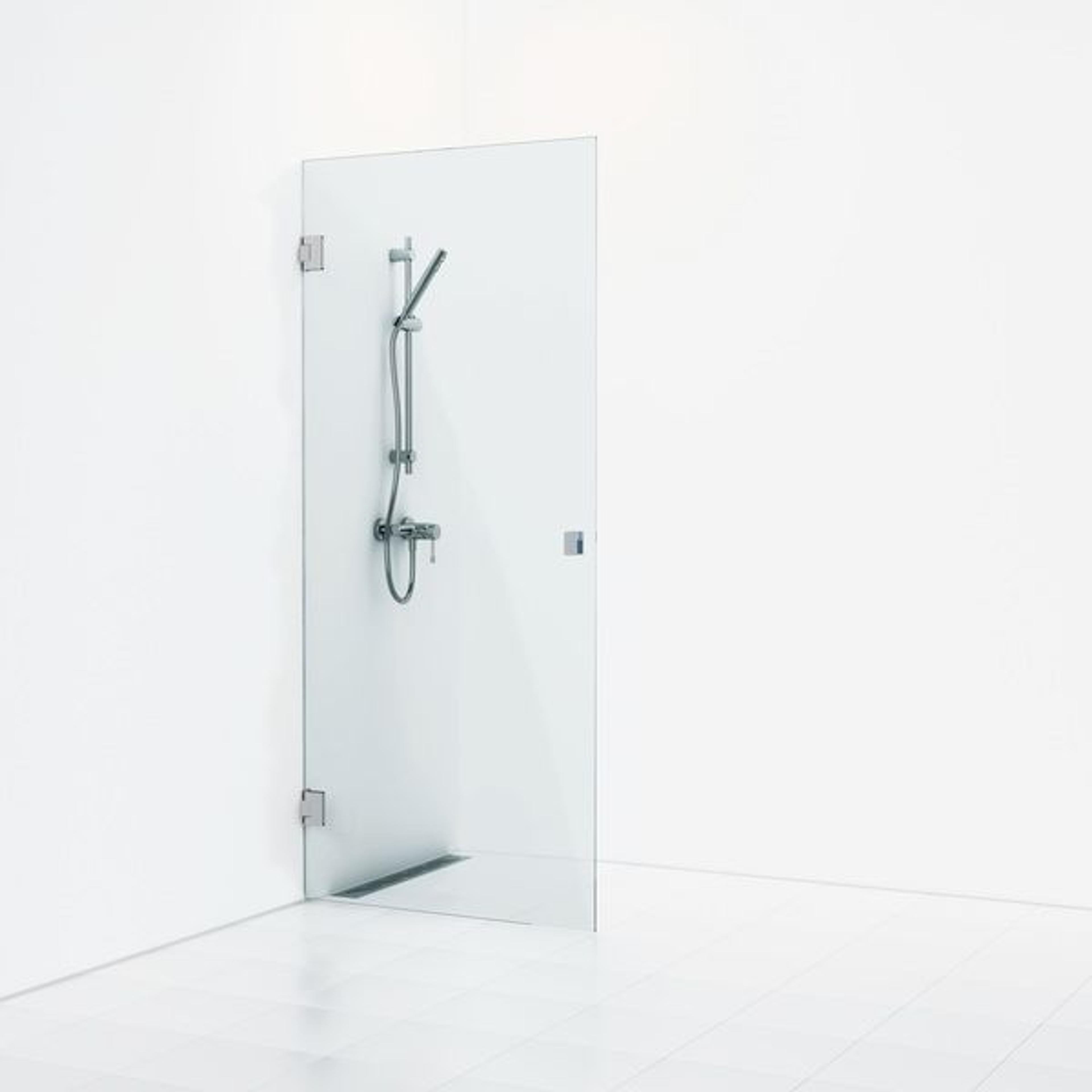 180° enkel nisjedusj 88.5 med en åpningsbar dør i klart glass med pulverlakkerte profiler i matt svart. Nisjedusj med 8 mm herdet sikkerhetsglass og selvlukkende hengsler. Pris uten dusjsett og dusjkran.