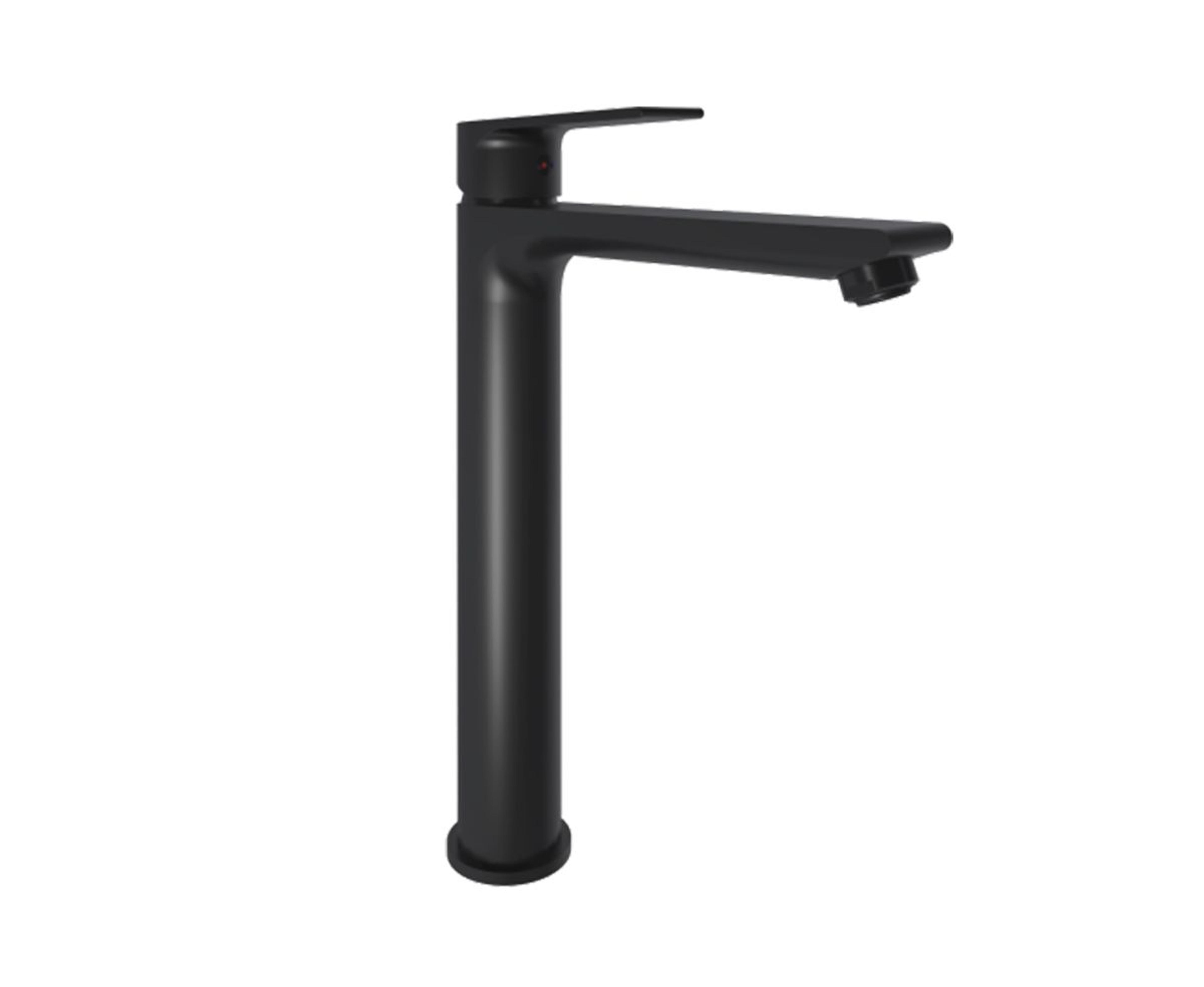 Halde frittstående servantbatteri i svart matt. Minimalistisk og velbalansert uttrykk med smarte funksjoner. Høyde: 297 mm. Kran: 170 mm. Tilkobling: G 3/8.