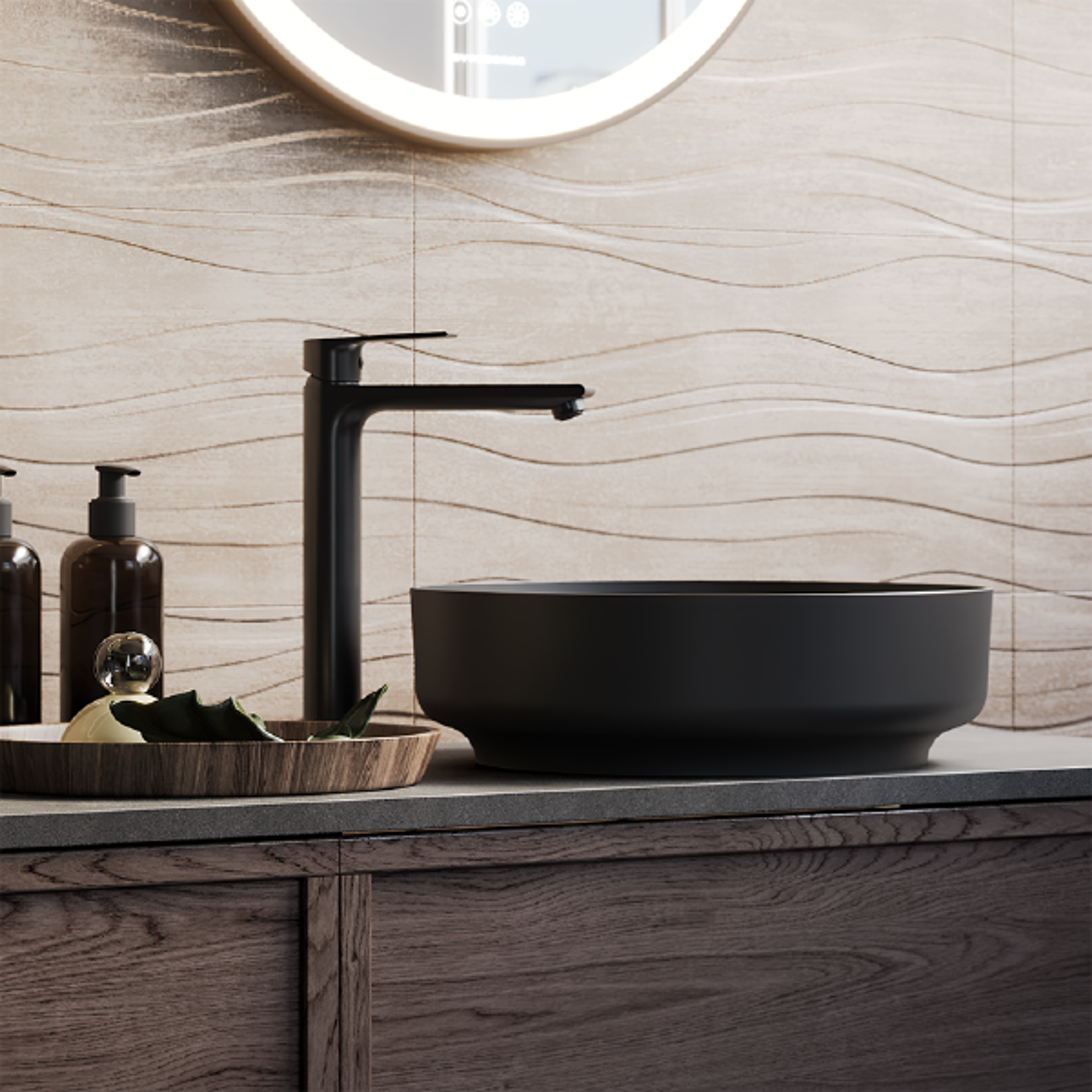 frittstående servantkran halde 5x29,7x17 mocca med ett greps og kald start.