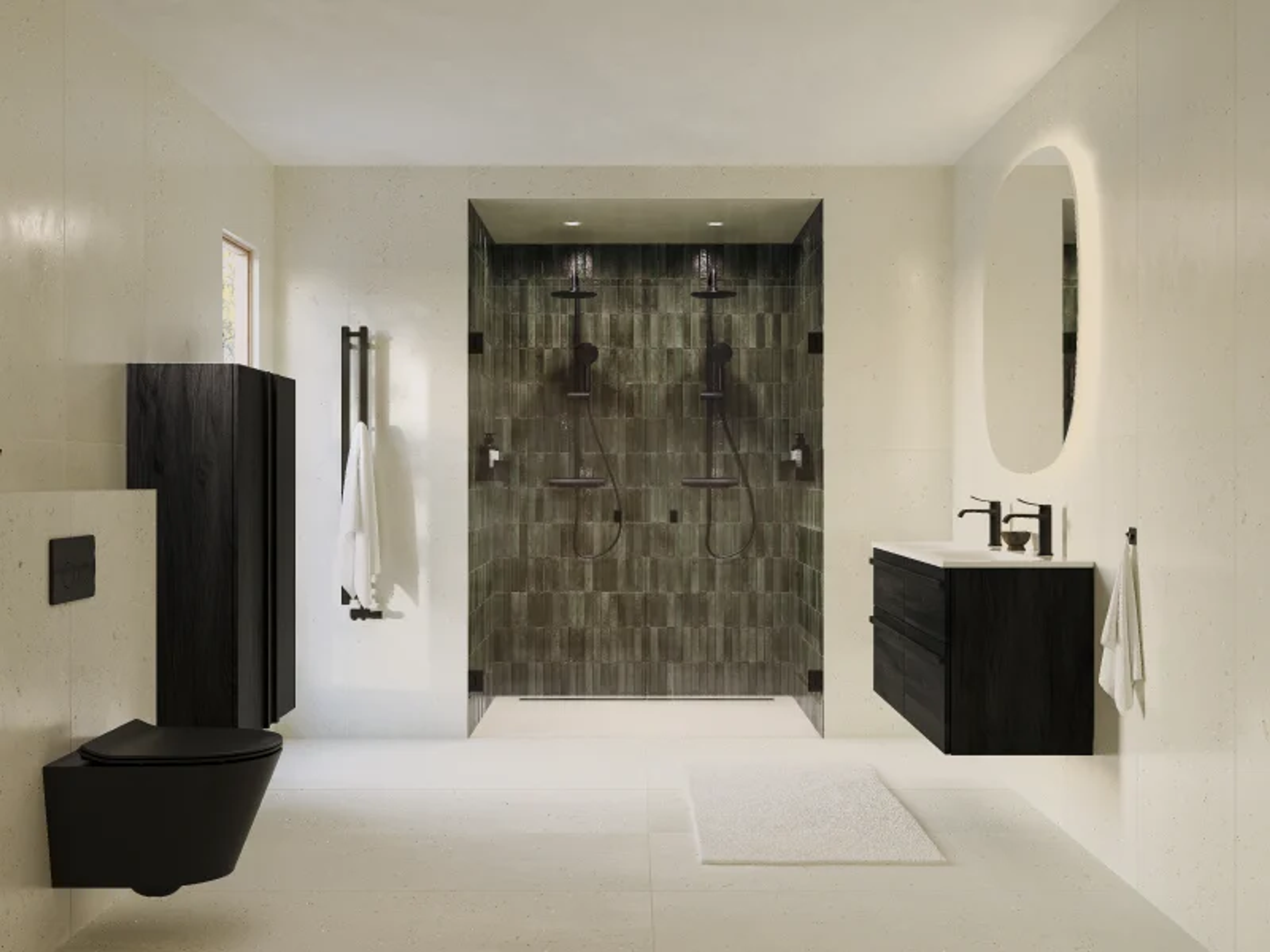 Zaga vannbåren håndkletørker i kantete formspråk. Passer i mindre rom med vertikalt hengende håndklær.