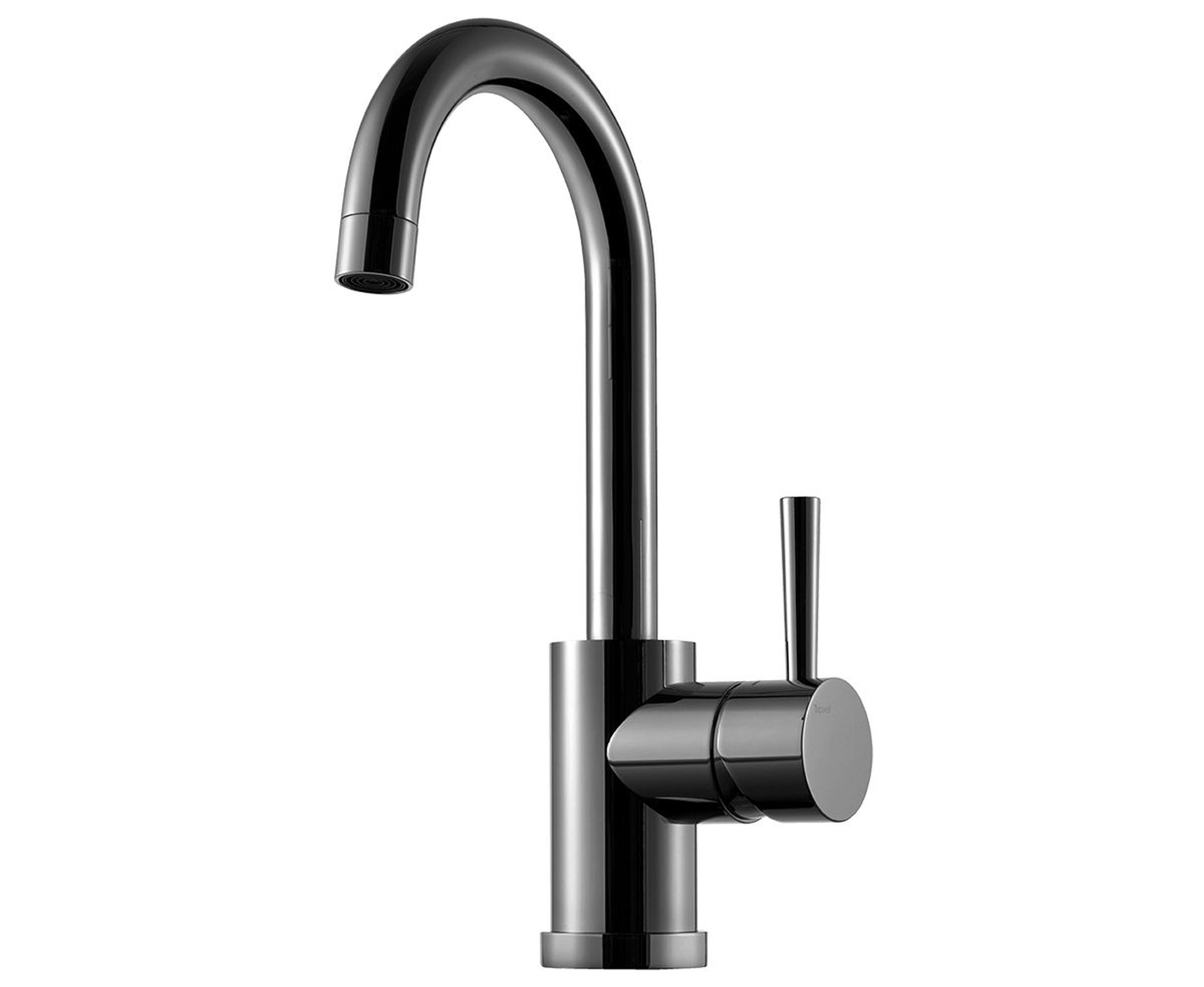 Servantbatteri 1 greps, med høy svingbar tut, uten oppløftventil, kombiner med bunnventil i vask NRF.nr 4230625 Farge: Black Chrome