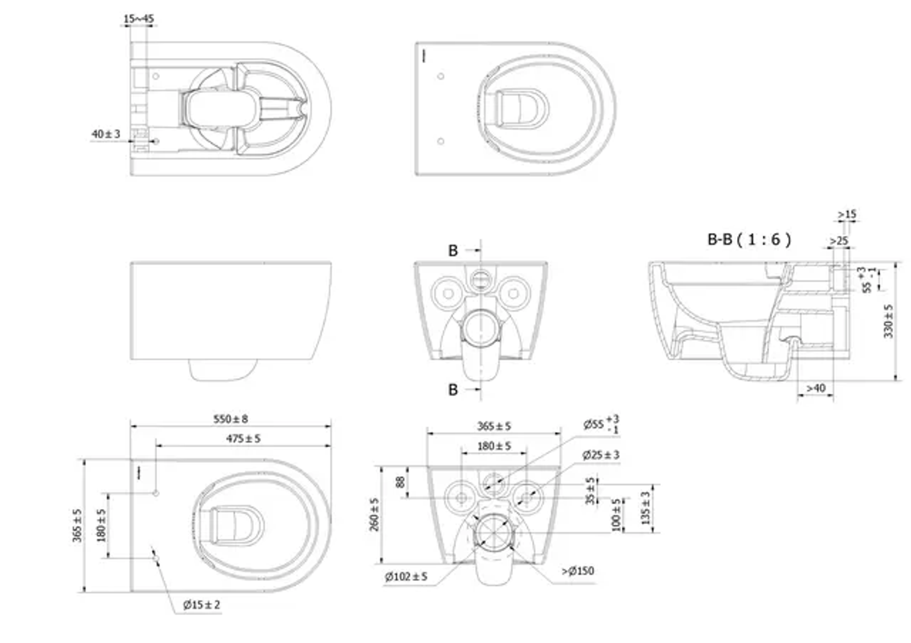 - Senteravstand hull sete/lokk