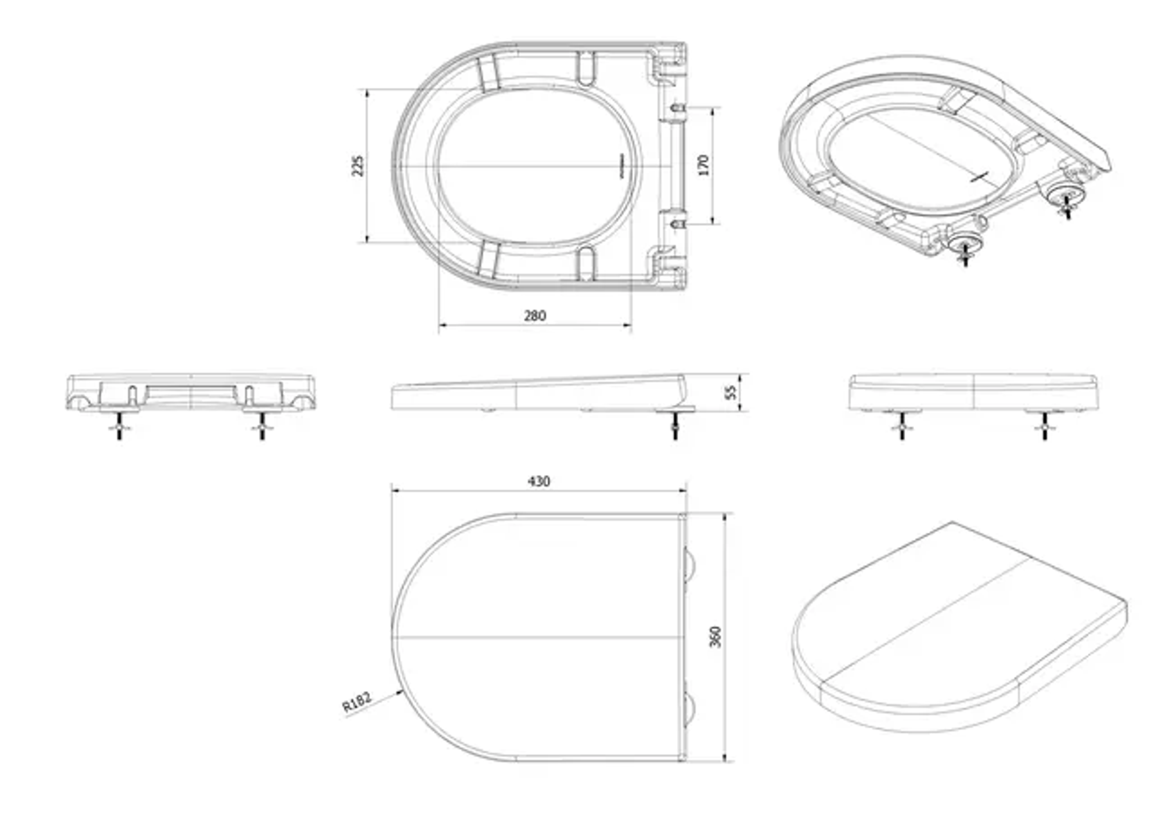 - Med lårstøtte / fast toalettsete