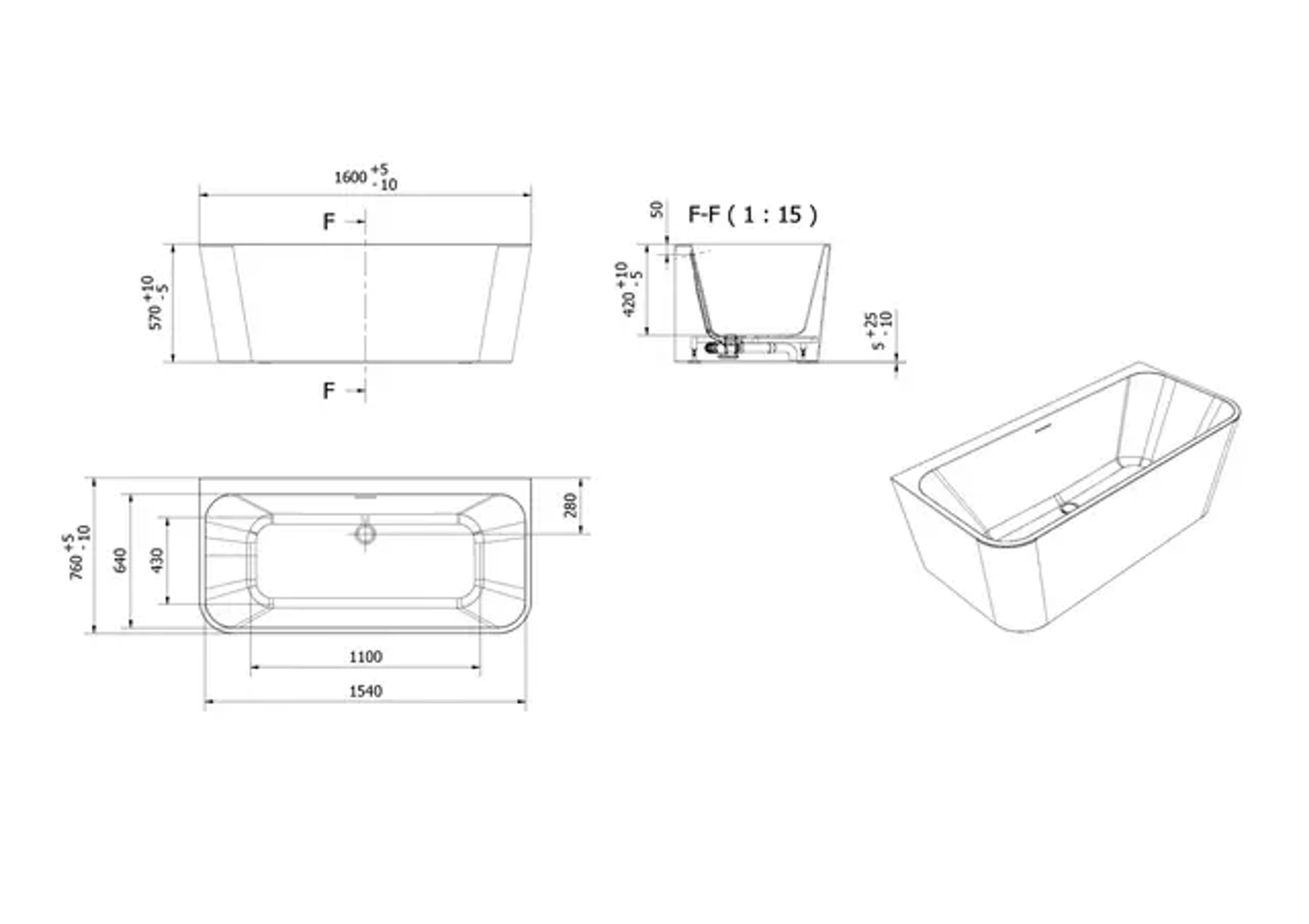 Vikingbad badekar frittstående med og uten kantkararmatur. Toppkanten mot vegg er beregnet for å montere karkantarmatur God innvendig dybde Stilrent slisset overløp Pop-up avløp