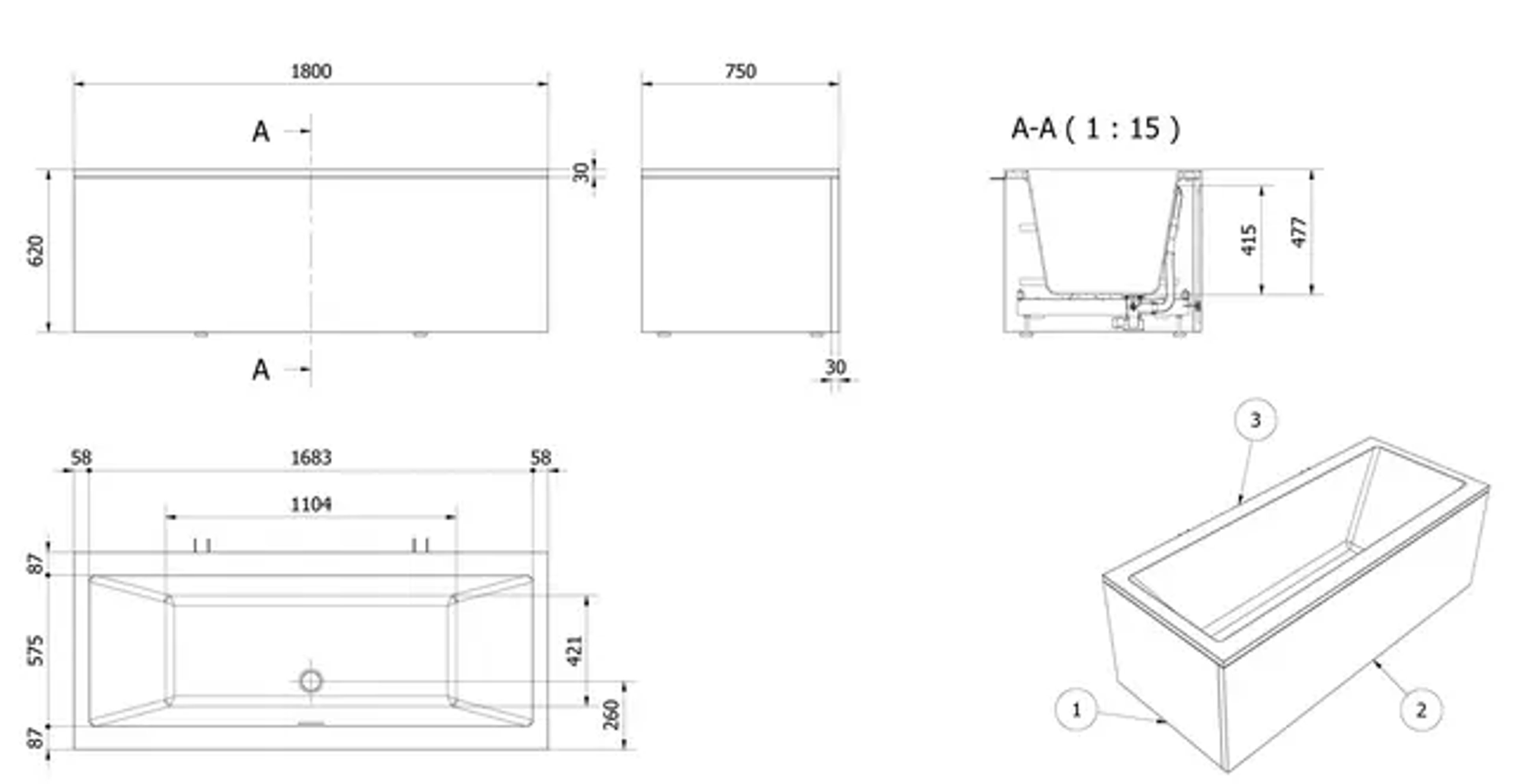 Tilpasset for montering av Vikingbad karkantbatteri Stilrent slisset overløp Pop-up avløp Denne modellen inkluderer front- og endepanel.