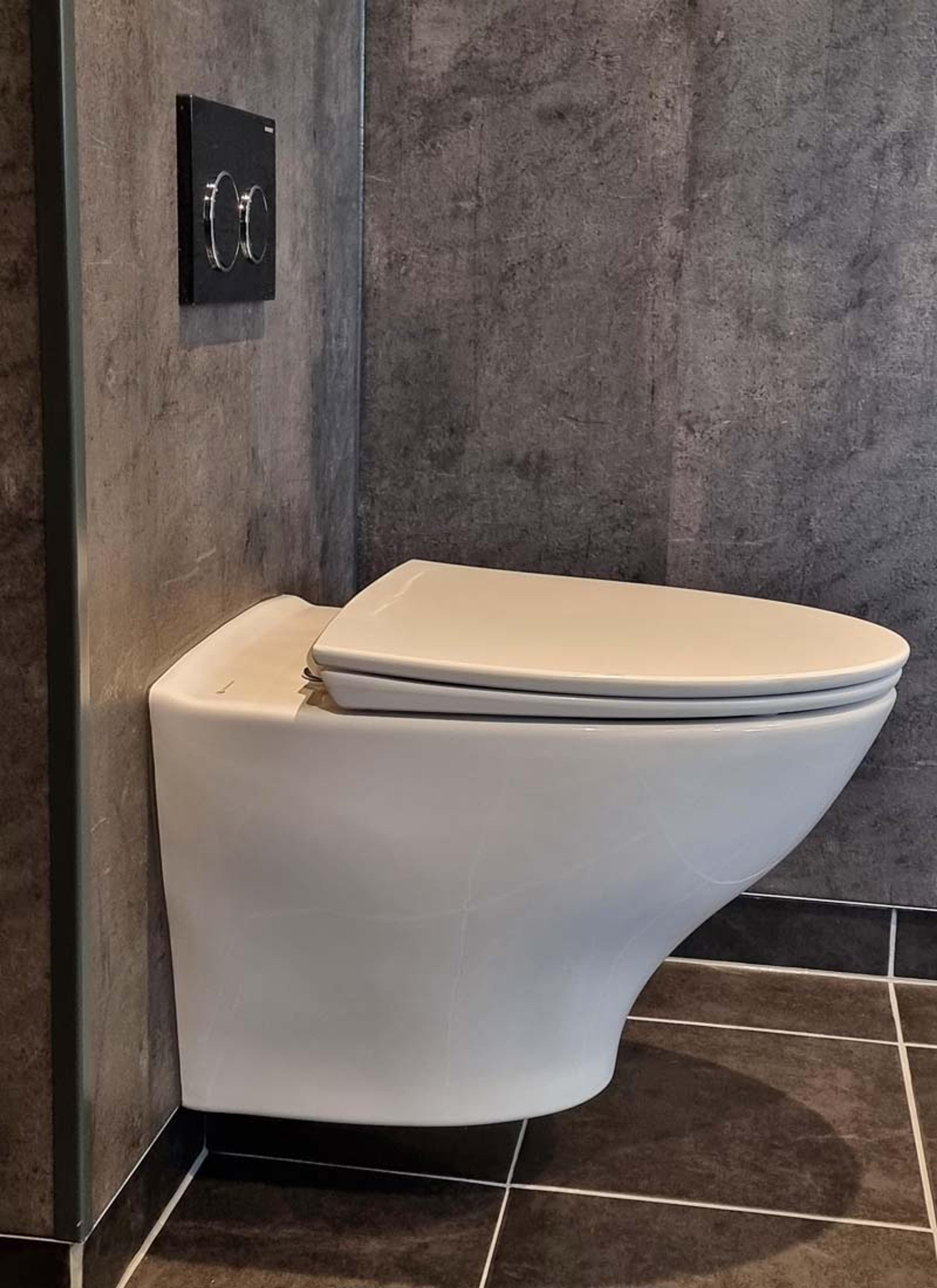DESIGNTOALETT: Porsgrund Bad Glow 66 vegghengt toalett sine rene linjer og former er både lekkert å se på og praktisk med tanke på renhold. Toalettet har i tillegg en Smart-glasur som gir toalettet en svært slitesterk og glatt overflate der skitt og kalk har vanskeligere for å feste seg
